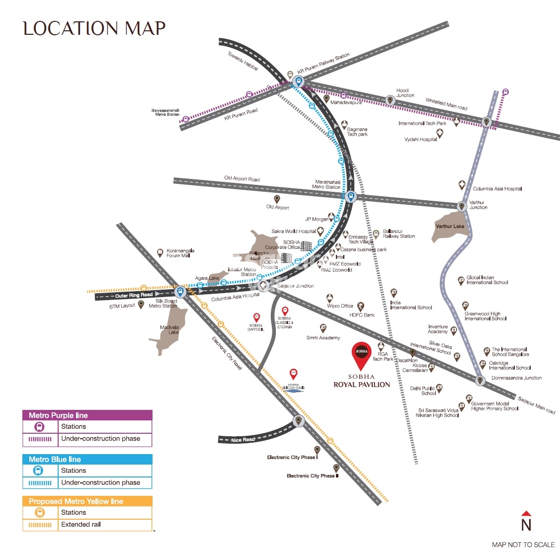 Sobha Royal Pavilion Phase 8, located on Sarjapur Road, is a premium residential project that offers a unique blend of luxury and comfort. This project is well-connected to major roads like Outer Ring Road, Hosur Road, and Sarjapur Road, making it an ideal location for those who value convenience and accessibility.