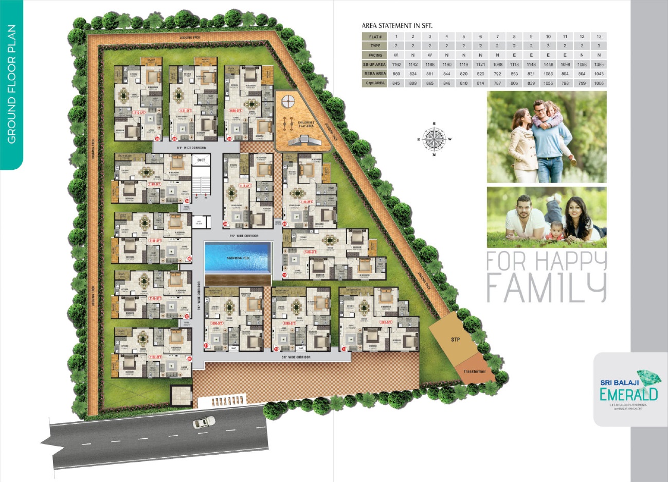 Choose from our varied unit options to find the perfect fit for your needs. From 2 BHK apartments measuring 1088 Sq. Ft. to 3 BHK apartments spanning 1448 Sq. Ft, we have a range of properties to suit your lifestyle. Whether you re a young professional, a growing family, or a retired individual, Sri Balaji Emerald is the perfect place to call home.