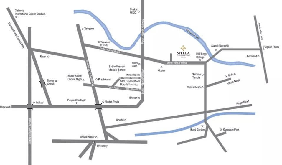 Srrinivas Stella C1 is a luxurious residential project that offers high-end living at an affordable price. It is located in Pimpri Chinchwad PCMC,Pune and offers a range of luxurious two-bedroom apartments that come in sizes from 512 sqft to 547 sqft. The project is situated close to Indrayani River and offers residents stunning views of the river and the surroundings. The project is also located nearby MIT College, making it an ideal place for students.
