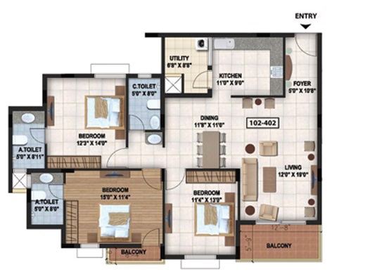 | 3 BHK Apartment | 1805 | 1.11 Cr |