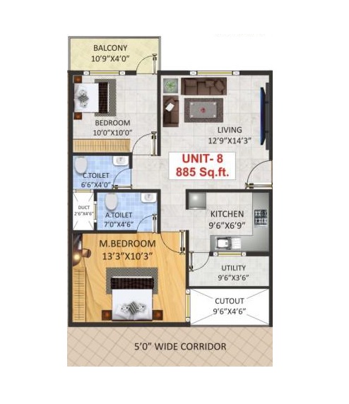 | 2 BHK Apartment | 885 | On Request |