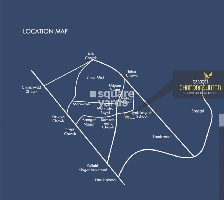 Svasti Chandrasuman is a luxurious residential complex that offers 1 and 2 BHK Comfy-Conve Homes. The project is located in Pimpri Chinchwad PCMC,Pune and has 16 units spread over 0.1 acres. The homes have a luxurious design and are perfect for homebuyers who are looking for a comfortable and convenient living experience. The homes are close to Old Pune Mumbai Highway and are easy to connect to Hinjewadi IT Park, Pune International Airport and other important areas of the city.