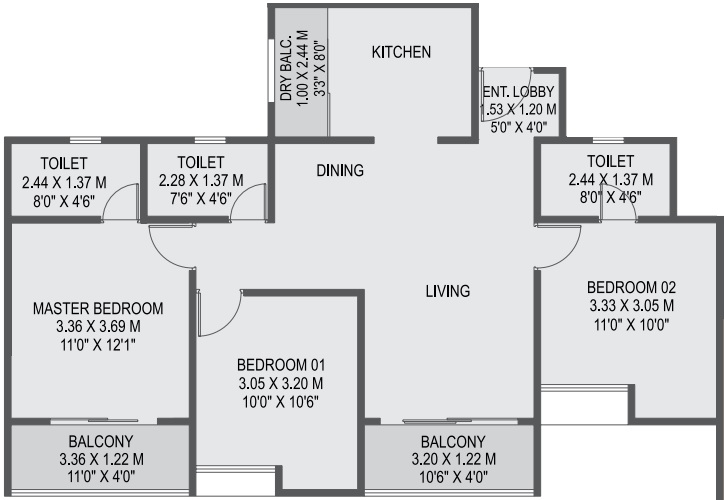 | 2 BHK Apartment | 755 | 79.94 Lac |