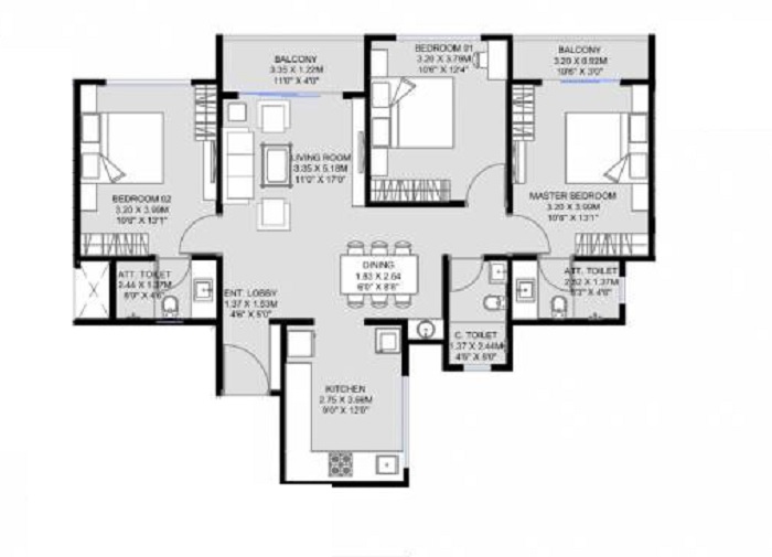 | 3 BHK Apartment | 938 | 1.31 Cr |