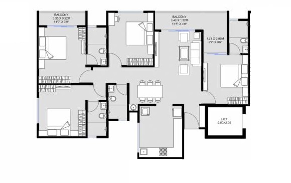 | 4 BHK Apartment | 1173 | 1.64 Cr |