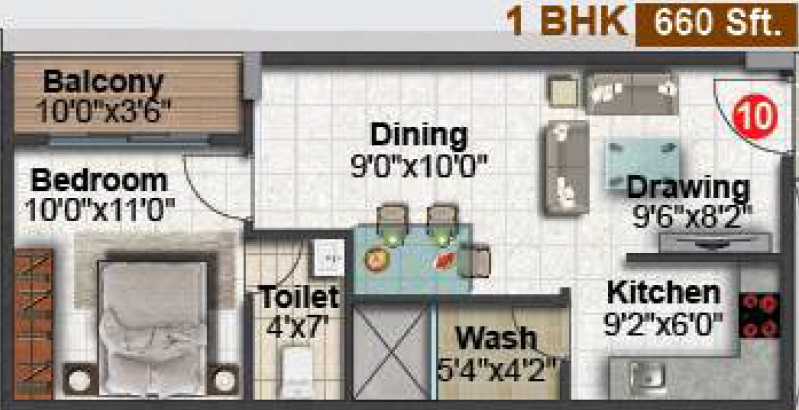1 BHK Apartment | 660 | 33.00 Lac |