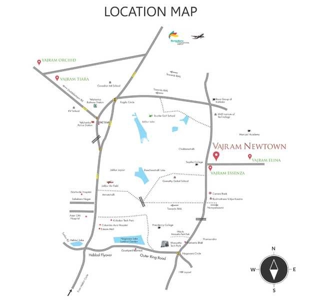 Vajram Newtown is a new age residential project nestled in the vibrant Thanisandra Main Road, Bengaluru. This strategically located project boasts seamless connectivity to prominent roads like Hennur Main Road, just 3.5 km away, and Thanisandra Main Road, just 0.1 km away, making it an ideal abode for those who prioritize convenience and connectivity.