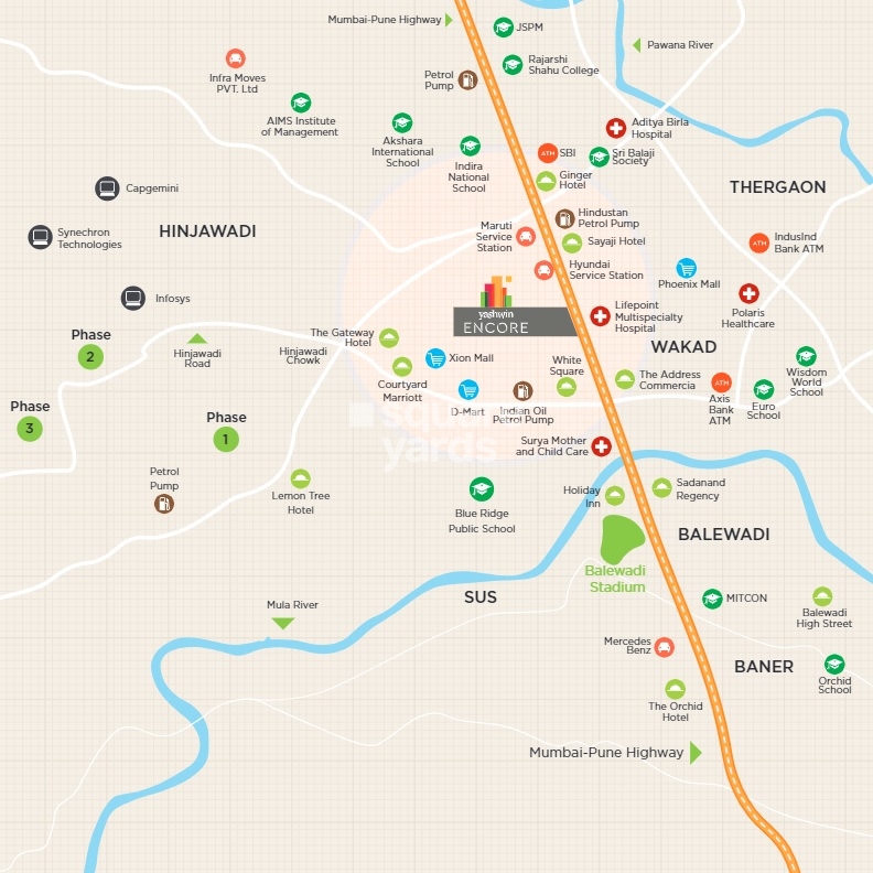 Vilas Javdekar Yashwin Encore is a world-class residential project launched by Vilas Javdekar Group situated in Pimpri Chinchwad PCMC,Pune. The project offers luxurious residences spread over 506 Units spread over 4.05 acres. The project consists of 2 and 3 BHK homes that come with smart home automation and premium specifications with size of upto 3 BHK. The project features apartments having Maximum Living area and comes with extensive views of hills, open green spaces and a riverside too. This provides a perfect escape from the hustle and bustle of the city. No other township in the locality can boast of such a feature-rich location. The project is strategically located at West Pune most sought after hub, well connected to Mumbai Pune Expressway.