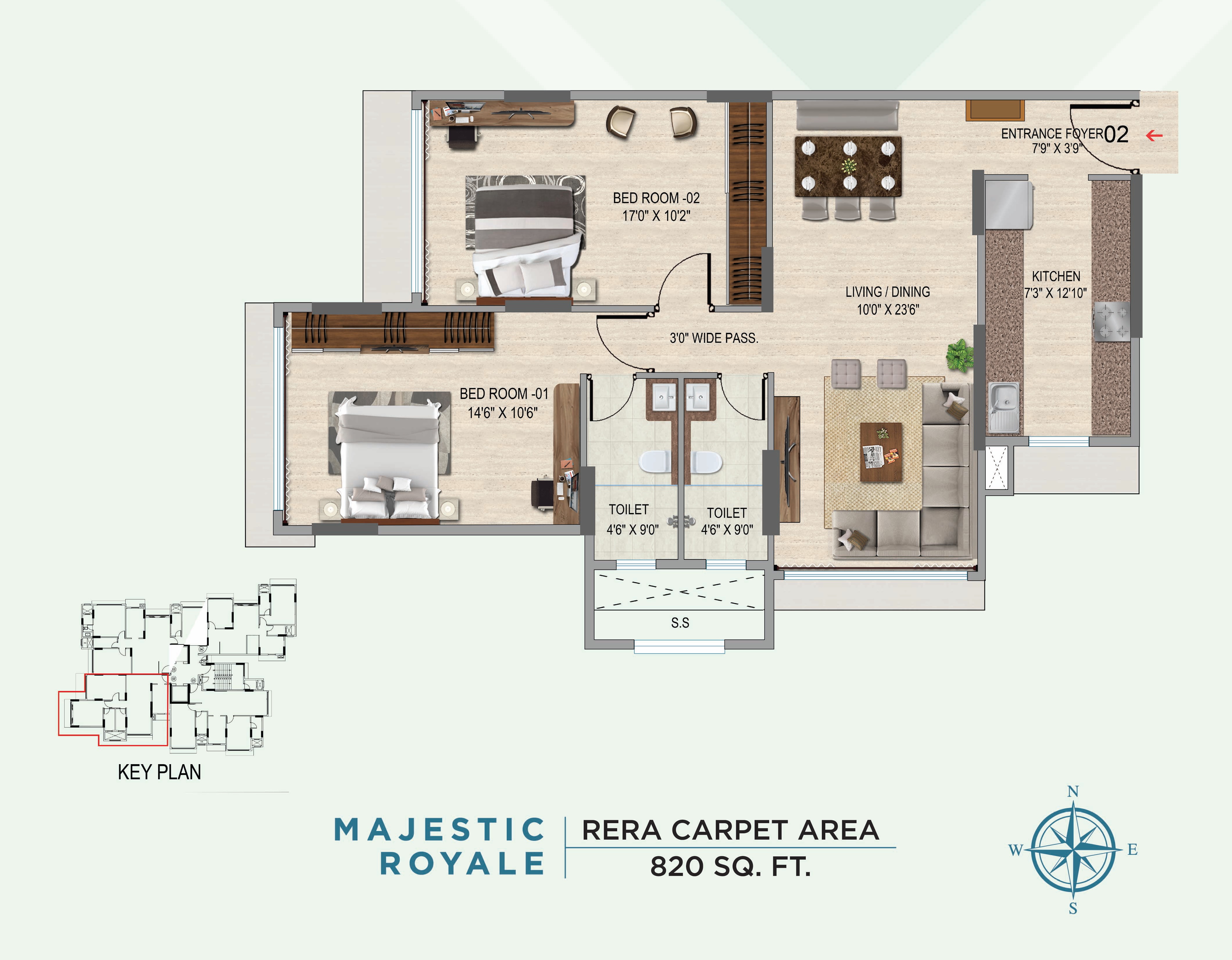 | 2 BHK Apartment | 820 | 2.73 Cr |
