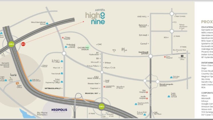 Check out Anvita High 9 in Tellapur, one of the upcoming under-construction housing societies in Hyderabad. There are apartments for sale in Anvita High 9 Tellapur, Hyderabad. This society will have all basic facilities and amenities to suit homebuyers needs and requirements. Â Brought to you by Anvita, Â Anvita High 9 is scheduled for possession in Nov, 2028.