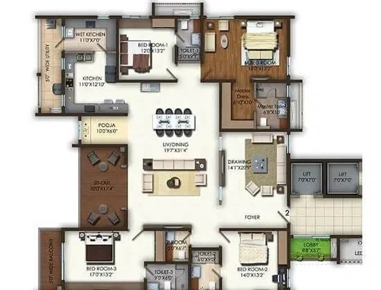 Step into a world of luxury with this stunning 4bedroom apartment located in the prestigious Aparna One project in Shaikpet, Hyderabad.