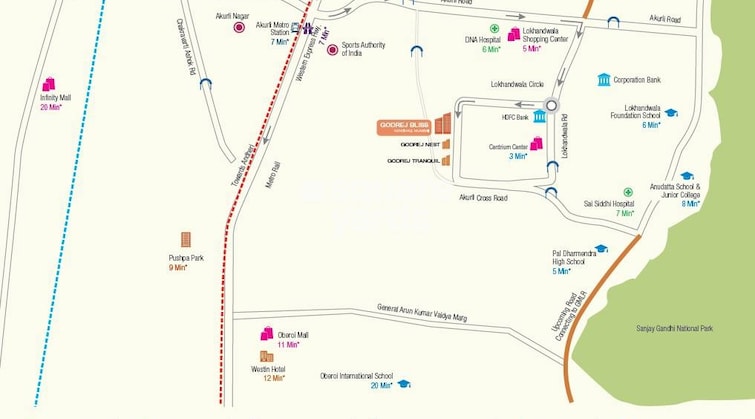 Western Express Highway 07 min* Akurli Metro Station 07 MIN* Kandivali Train Station 10 MIN* Lokhandwala Foundation School 06 MIN* Thakur Public School 16 MIN* DNA Multispecialty Hospital 06 MIN* Growels 10107 MIN*