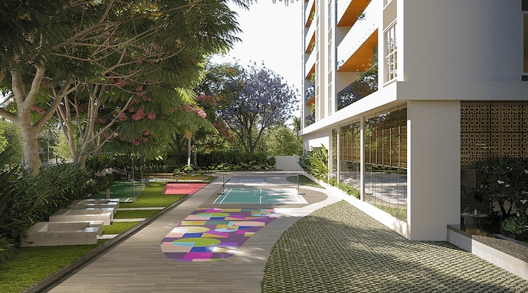 - **Outdoor Experiences:** Enjoy a spectrum of activities with our jogging trails, amphitheater, landscaped seating courts, pergola decks, and a kids` play area. Sports enthusiasts will appreciate the cricket net court, tennis and basketball courts, all within a secure and scenic environment.