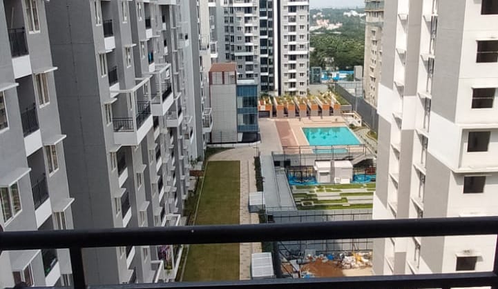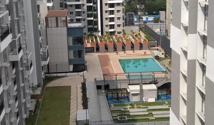 New built apartment, less than an year. Close to Airport, railway stations, IT hubs. Extended balcony, pool facing.
