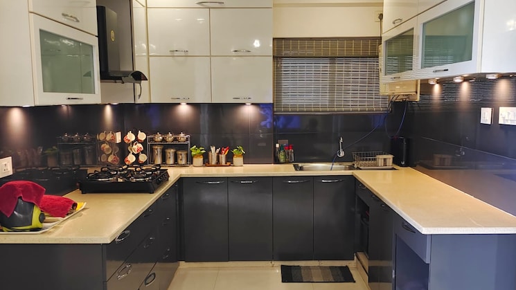 Area - 1910 Sq ft. Parking - 2 covered. Flat facing - West Floor - 13 out of 19Â High quality interiors done with false ceiling, LED lights, wardrobes with bottom storage in all rooms Modular Kitchen with fancy 15 drawers and trolleys and Chimney. 12`x9` . unit. Mosquito mesh in both balconies. 2 wall mounted work tables 3 geysers 1 double bed with good quality mattress 1 bunk bed with good quality mattress All washrooms fitted with mirrors, soap stand, exhaust fans and curtain rods. Big curtain in living room. Sink and slab in the service balcony. Fancy . lights, fans etc 2 Club houses with: Gym Badminton courts Squash court Swimming pools Lawn tennis Salon Other facilities: Amphitheatre Basket ball court Cricket ground 5 Kids play areas. Walking/cycling track Upcoming in society: Temple and Shopping complex. Price: Rs (all inclusive.)