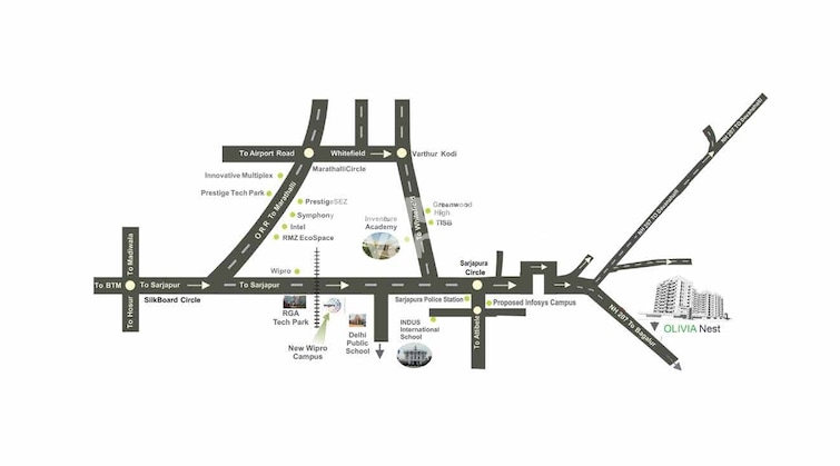 Sowparnika Olivia Nest is a residential project located in Sarjapur, Bangalore, offering 1, 2, and 3 BHK apartments. The project spans approximately 2 acres and comprises around 211 units distributed across a single tower with 8 floors. Key Features: Amenities: Residents can enjoy a range of amenities, including a swimming pool, gymnasium, children`s play area, multipurpose hall, guest accommodation, elder`s plaza, doctor`s clinic, CCTV surveillance, 24-hour power backup, reading cabana, rainwater harvesting, convenience store, basketball practice post, cricket practice pitch, yoga and meditation area, and more. Location Advantages: Strategically situated in Sarjapur, the project offers proximity to schools, colleges, hospitals, shopping malls, grocery stores, restaurants, and recreational centers. Notable nearby landmarks include Bagalur-Sarjapur Road (10 meters away), Aikhyatha Public School ( km), Town Hospital Sarjapura ( km), Azim Premji University ( km), and Clover Greens Golf Course ( km).